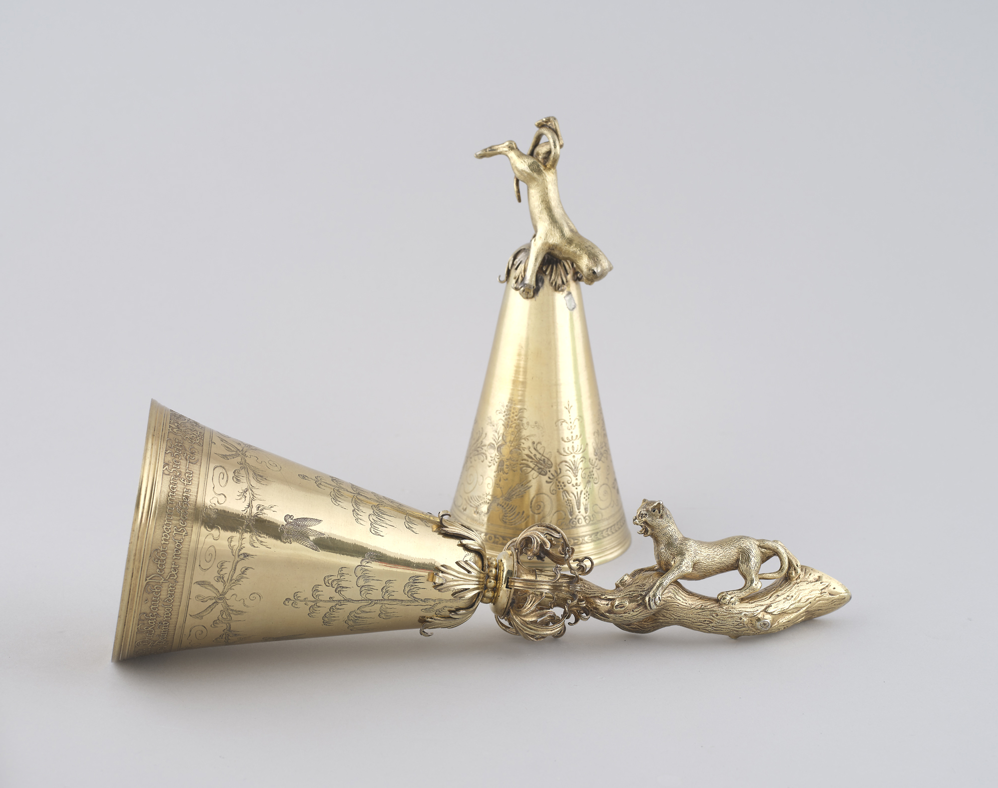Herausragende Werke vom frühen 17. Jahrhundert bis in die Gegenwart beleuchten im dritten Ausstellungskapitel die Vielfalt technischer Möglichkeiten für Formgebung, Design und Dekor. Warum Nürnberg im 16. und 17. Jahrhunderts ein Zentrum von europäischem Rang war, dokumentieren zwei Meisterwerke der Silberschmiedekunst, die als Leihgaben des Germanischen Nationalmuseums Nürnberg zu sehen sind: zum einen ein Paar in den Wandungen fein gravierter Sturzbecher der Nürnberger Patrizierfamilie Tetzel, die um 1610 in der Werkstatt von Hans Pezolt entstanden und das brillante künstlerisch-handwerkliche Können des Meisters bezeugen. Zum anderen ein vergoldeter Tulpenpokal aus dem Jahr 1673 von Sigmund Bierfreund, dem die Silberforschung den sprechenden Namen des „Meisters der Tulpenkuppen“ gegeben hat.