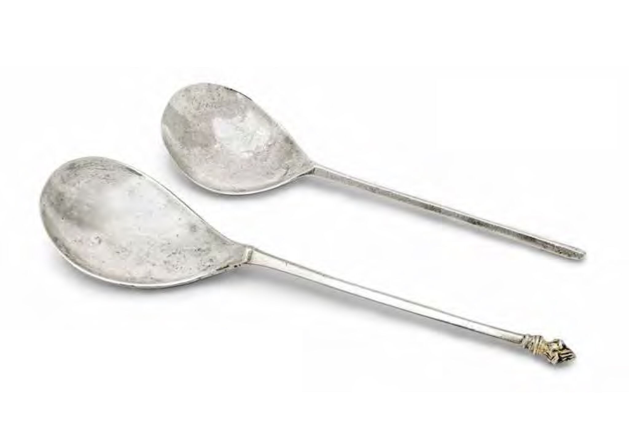 Der Leihgabe der Galerie Matzke, Grünwald, verdankt sich ein silberner, fein geschmiedeter, mit der Stadtmarke von Toulouse und der Meistermarke des Silberschmieds Claude Mazas versehener Löffel von 1517; der Löffel, der in seinem zeitlosen Design über die Jahrhunderte hinweg anspricht, verkörpert nicht nur die Tafelkultur der Renaissance, sondern auch die älteste gestempelte Silberarbeit in der Ausstellung.