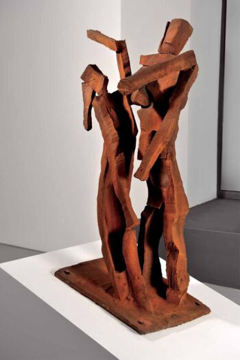 „Seh´ ich flüchtige Schatten, befreit von der Schwere des Leibes?“, fragt Friedrich Schiller in seiner Elegie „Der Tanz“. Mit dieser Frage ist direkt auch das Werk des Gmünder Bildhauers, Malers und Zeichners Eckhart Dietz angesprochen. Seit Jahren steht das Thema Tanz, die Darstellung der flüchtigen figürlichen Bewegung im Raum, im Zentrum der bildhauerischen und zeichnerischen Arbeit des heute 76-Jährigen. Aktuelle Aspekte dieser Auseinandersetzung beleuchtet die Galerie im Prediger Schwäbisch Gmünd vom 26. Februar bis 25. April mit neuen Arbeiten des Bildhauers: Gezeigt werden neun großformatigen Skulpturen- bzw. Skulpturengruppen aus rostrotem Eisenguss. Eckhart Dietz, für seine Kreativität und für seinen Ideenreichtum bekannt, hat die Arbeiten eigens für die Gmünder Ausstellung geschaffen. Parallel zur Werkschau in der Galerie im Prediger zeigt die Galerie im Chor Entwurfsarbeiten des Künstlers. Zur Ausstellung erscheint ein Katalog (64 Seiten, 18 Euro).