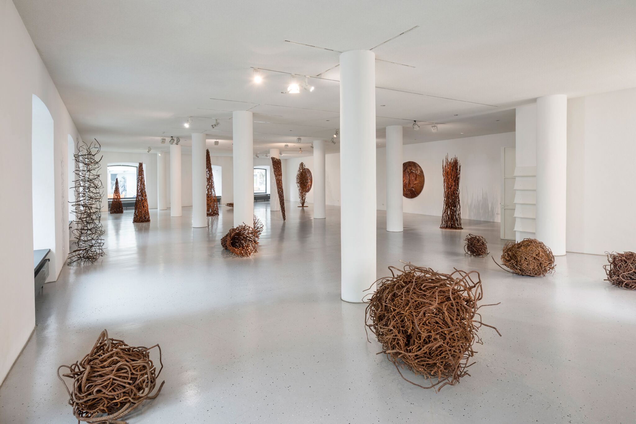Seit Anbeginn verwendet die Bildhauerin Stahl und Eisendraht. Aus diesem technoiden Industriematerial, kühl und korrodiert, spröde, scharfkantig und schwer, schafft sie schwerelos wirkende, abstrakte Gebilde, die an Naturvorgänge und -erscheinungen erinnern: an Buschwerk oder Ranken, an vom Wind zerzauste Bäume oder Pflanzenkelche. Die Rhetorik des Materials überführt sie in eine spannungsreiche Balance zwischen Naturanklang und geometrischer Struktur, zwischen skulpturaler Setzung und dreidimensionaler, linearer Raumzeichnung.