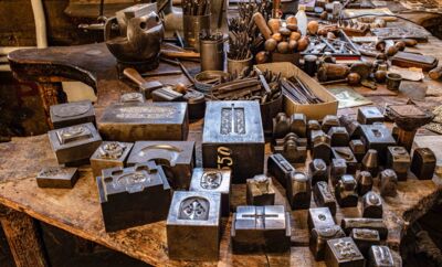 OTT-PAUSERSCHE FABRIK, Arbeitsplatz des Stahlgraveurs. © Museum im Prediger Schwäbisch Gmünd, Foto: Elias Blumenzwerg. -