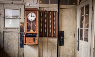 OTT-PAUSERSCHE FABRIK, Stempeluhr, Arbeitszeiterfassung um 1900. © Museum im Prediger Schwäbisch Gmünd, Foto: Elias Blumenzwerg. -